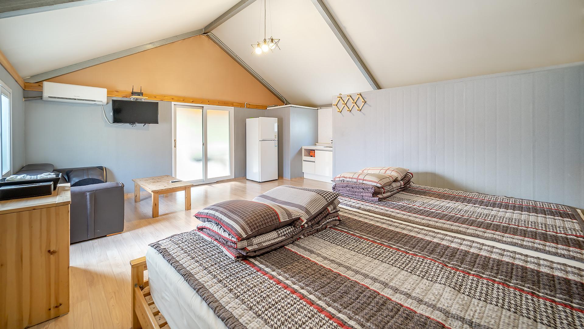 - 집기품목 : TV, 개별바비큐, 냉장고, 취사시설/도구, 커피포트, 전기밥솥, 전자레인지, 와이파이, 에어컨, 테라스, 드라이기, 화장대, 침대방, 트윈베드, VOD, 욕실용품, 히노끼, 글램핑