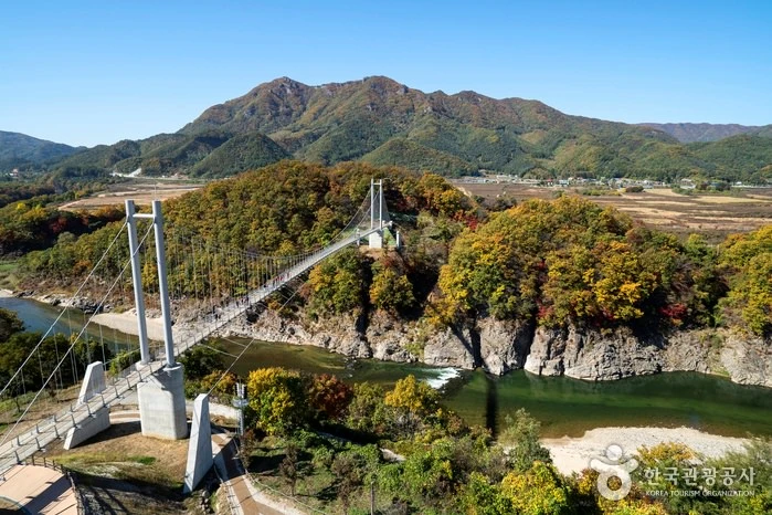 한탄강 협곡으로 단절된 생태경관단지(2019.12. 준공)와 테마파크 (2019.12. 준공) 등을 연결하는 이색적인 형태의 보도교로 길이 200m로 성인(80㎏) 1,500명이 동시에 지나갈 수 있도록 설계되어 있고, 한탄강 협곡을 지상50m 조망할 수 있다. 자료출처 : 대한민국 구석구석(http://korean.visitkorea.or.kr) 글램핑에서 약 27.3km, 차량으로 약 43분